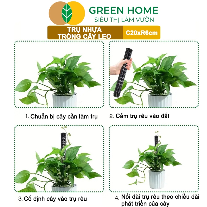 5 Trụ Nhựa Trồng Cây Greenhome, D20xr6cm, Nhựa Cứng, Có Khớp Dễ Nối Dài, Chuyên Hệ Cây Leo, Kiểng Lá