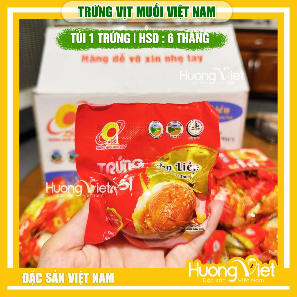 Trứng vịt muối ăn liền Minh Đức, trứng vịt Việt Nam hút chân không 60g trứng, ăn ngay không cần chế biến