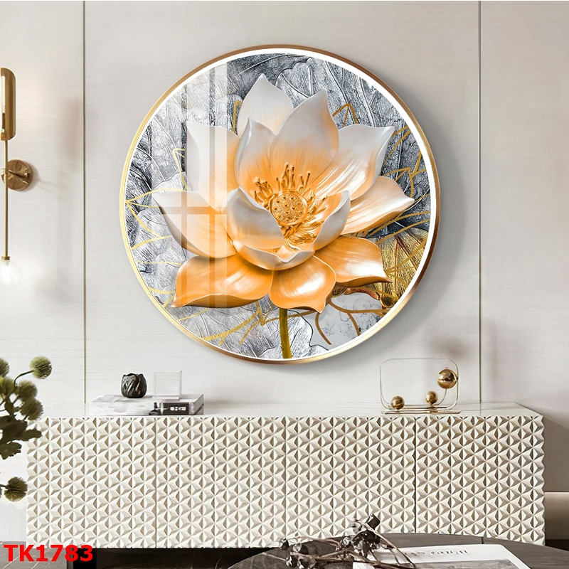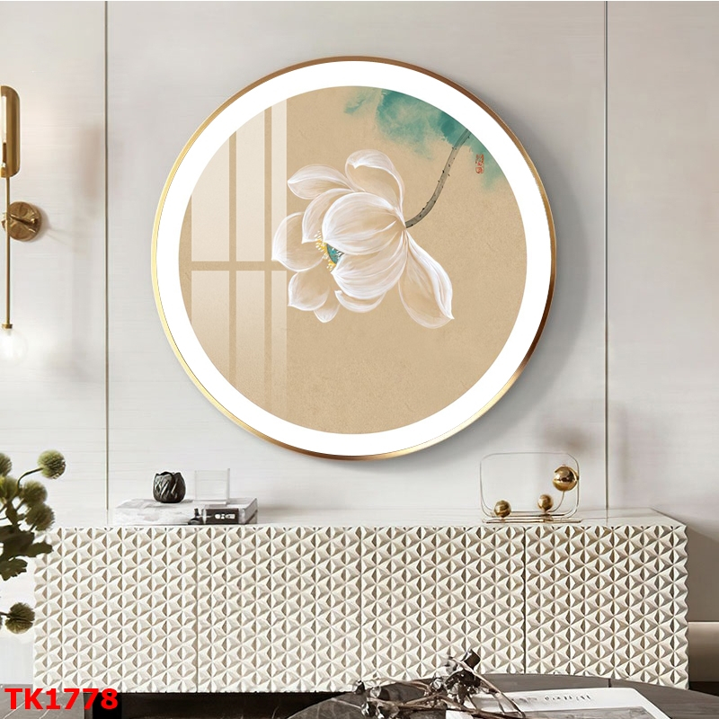Tranh Tròn Treo Tường Tráng Gương Cao Cấp Hoa Sen Trang Trí Nhà, Quán Cà Phê Hiện Đại OHA Decor