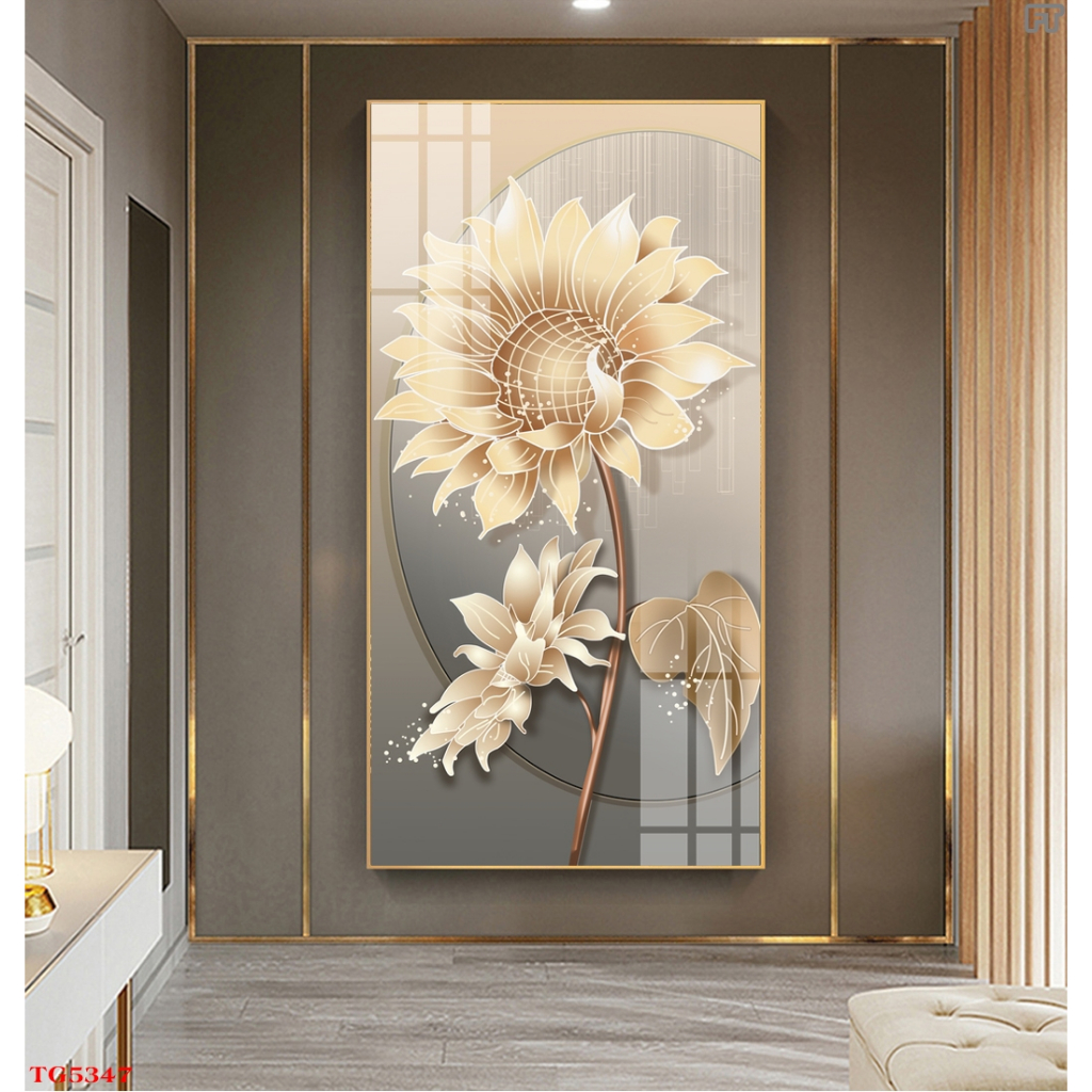 Tranh Treo Tường Tráng Gương Cao Cấp Chủ Đề Hoa Hướng Dương Trang Trí Nhà, Quán Cà Phê Hiện Đại OHA Decor
