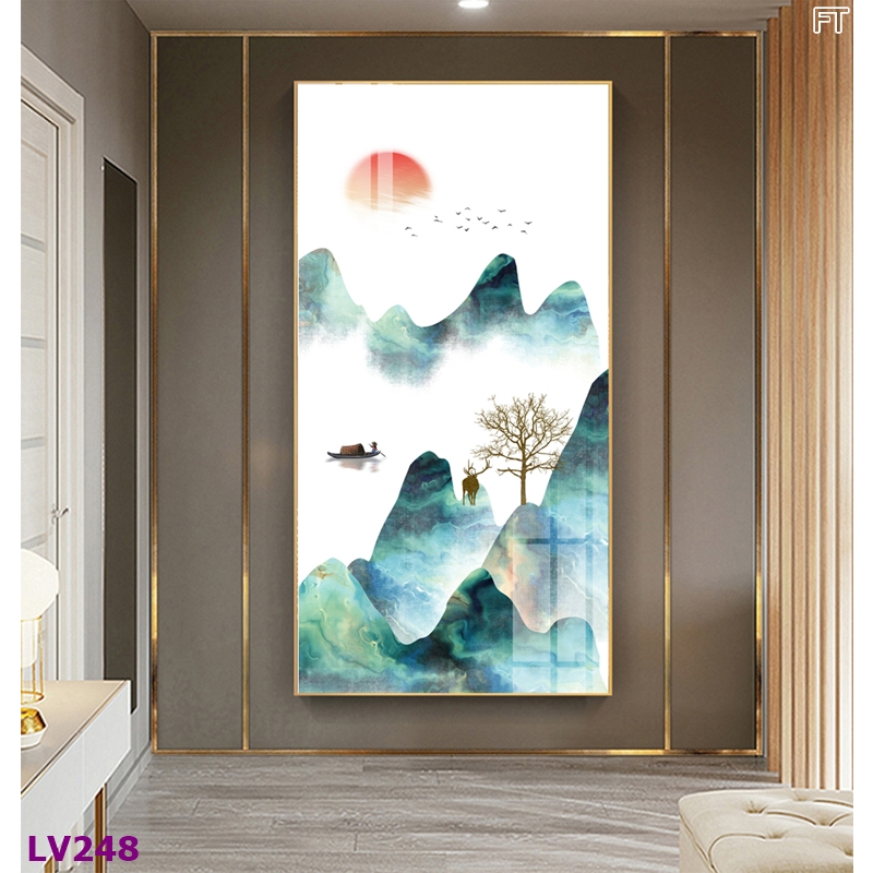 Tranh Treo Tường Tráng Gương Cao Cấp Phong Cảnh Núi Đẹp Trang Trí Nhà, Quán Cà Phê Hiện Đại OHA Decor