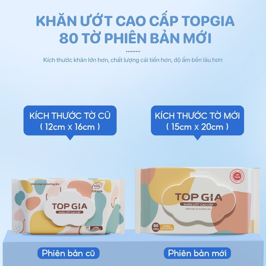 [MẪU MỚI] Thùng 12 bịch khăn ướt cao cấp Topgia 80 tờ không mùi không parabens dành cho em bé - Khăn ướt Top Gia