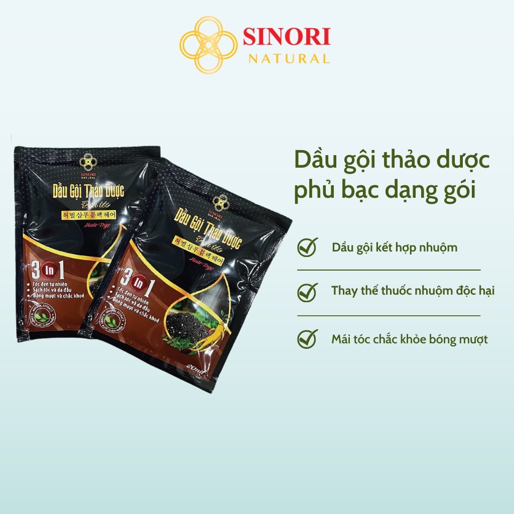 Dầu gội thảo dược đen tóc Sinori, giảm rụng tóc, bạc tóc 20ml