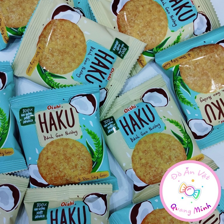 Bánh gạo nướng Haku Oishi vị dừa sấy giòn bịch 138g (16 gói nhỏ ) với lớp phủ dừa thơm béo ngon hấp dẫn