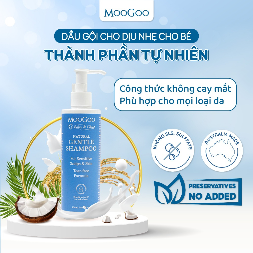 Dầu gội đầu dịu nhẹ MooGoo cho bé không SLS, Sulfate, cho bé, da nhạy cảm