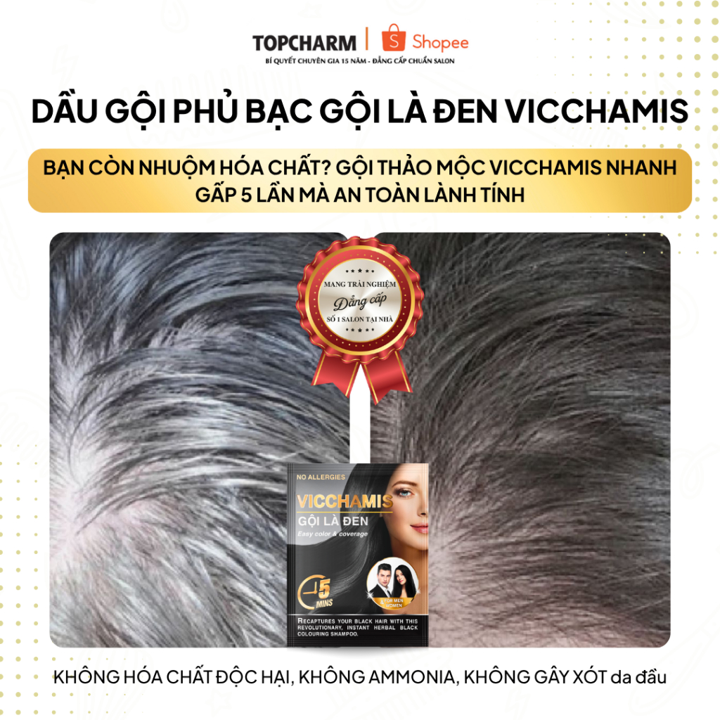 Dầu gội phủ bạc Vicchamis gội là đen óng tự nhiên giúp tóc mềm mượt combo 10 TOPCHARM