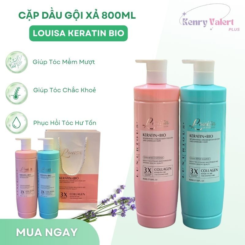 Cặp Dầu Gội Xả Mềm Mượt Louisa Keratin Bio X3 800ml Dưỡng Tóc Khô Xơ Chuẩn Salon Vào Nếp Suôn Mượt