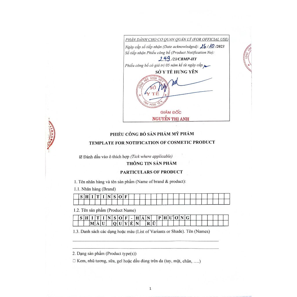 Dầu gội tóc màu nâu hạt dẻ màu quyến rũ Shitinsof Hán Phương (Hộp 3 gói x15ml)