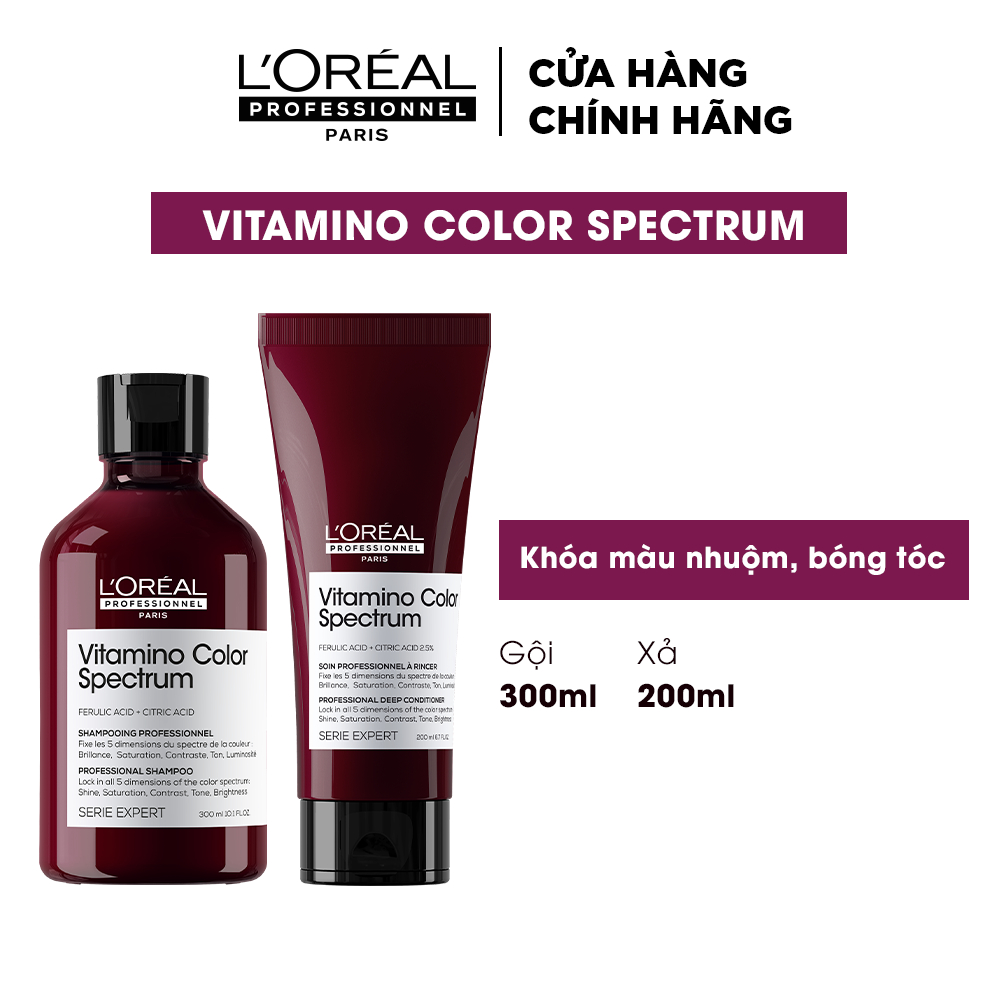 Combo dầu gội & dầu xả khóa màu 5D chuyên nghiệp giúp khóa màu nhuộm, bóng tóc Vitamino Color Spectrum 300ml