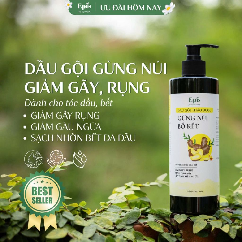 Dầu Gội Gừng Núi Bồ Kết Thảo Dược Epis | Cân Bằng Dầu Bết, Giảm Rụng Hiệu Quả, Tạm Biệt Gàu Ngứa