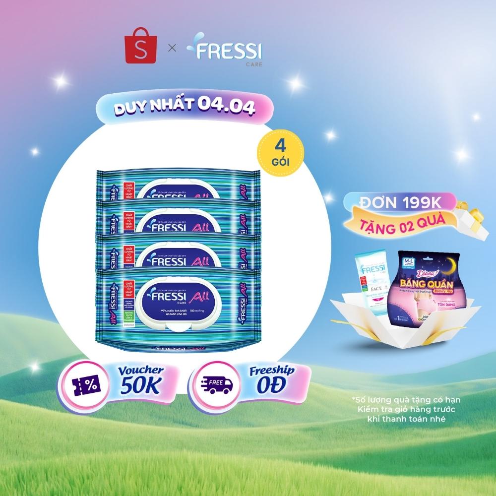 Bộ 4 gói khăn ướt chăm sóc gia đình Fressi Care All 100 miếng/gói