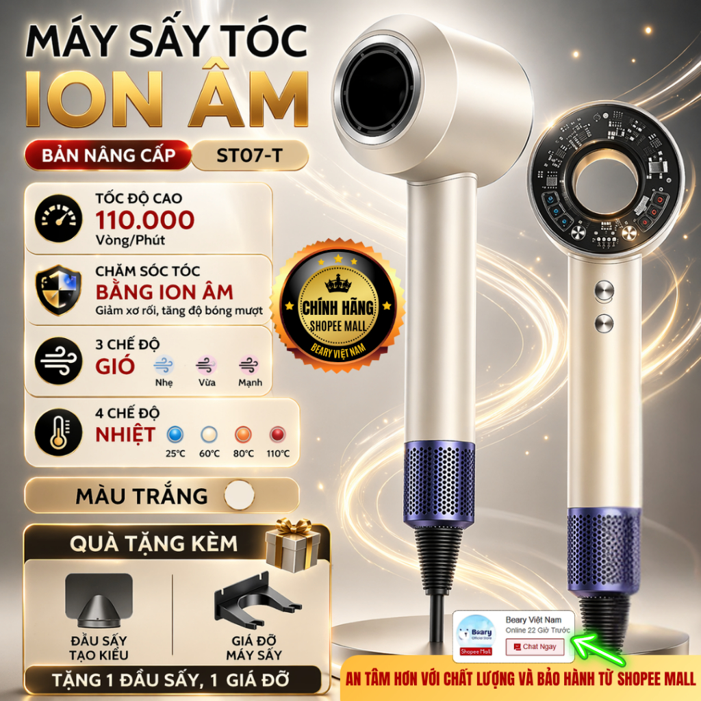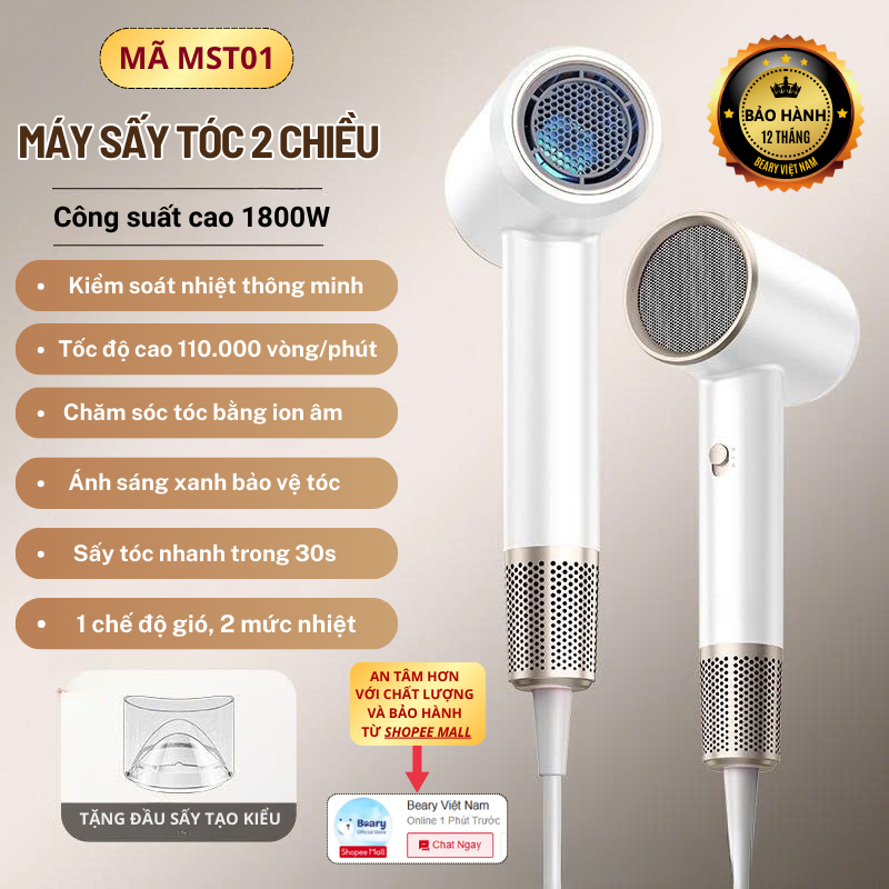 Máy Sấy Tóc Ion Âm 5in1 METIS Không Cánh Quạt 3 Tốc Độ Công Suất 2200W 2 Chiều Tặng Kèm Đầu Sấy