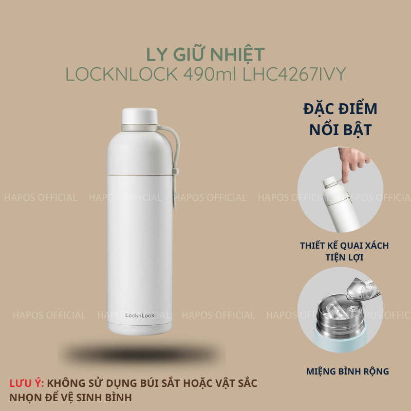Bình giữ nhiệt LocknLock 490ml Chính hãng màu Pastel hiện đại, có quai xách, giữ nhiệt lâu LHC4267 - HAPOS HOME