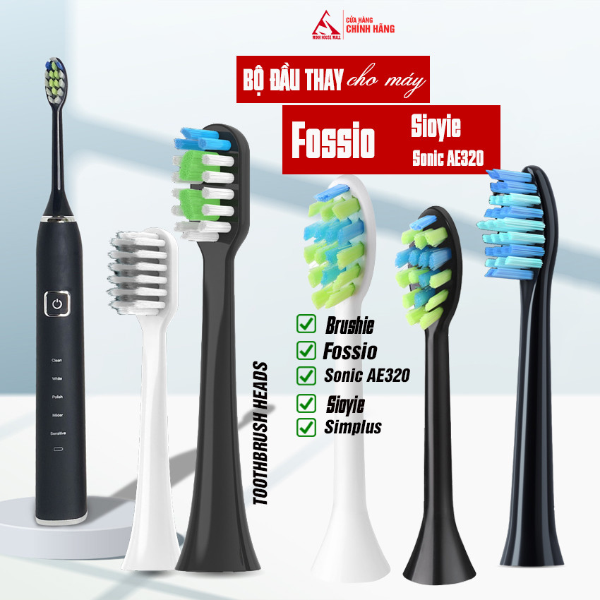 Cho máy Fossio, Sonic AE320, Brushie Full Model bộ 2 đầu bàn chải đánh răng điện Giá, Hộp Minh House