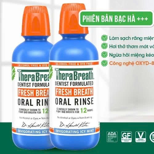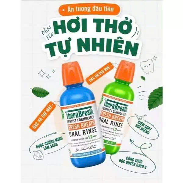 [Chính Hãng Mỹ] Nước Súc Miệng TheraBreath – Hơi Thở Thơm Mát Suốt 12h – Không Cồn – Không Cay Rát Chai Lớn 473 ml