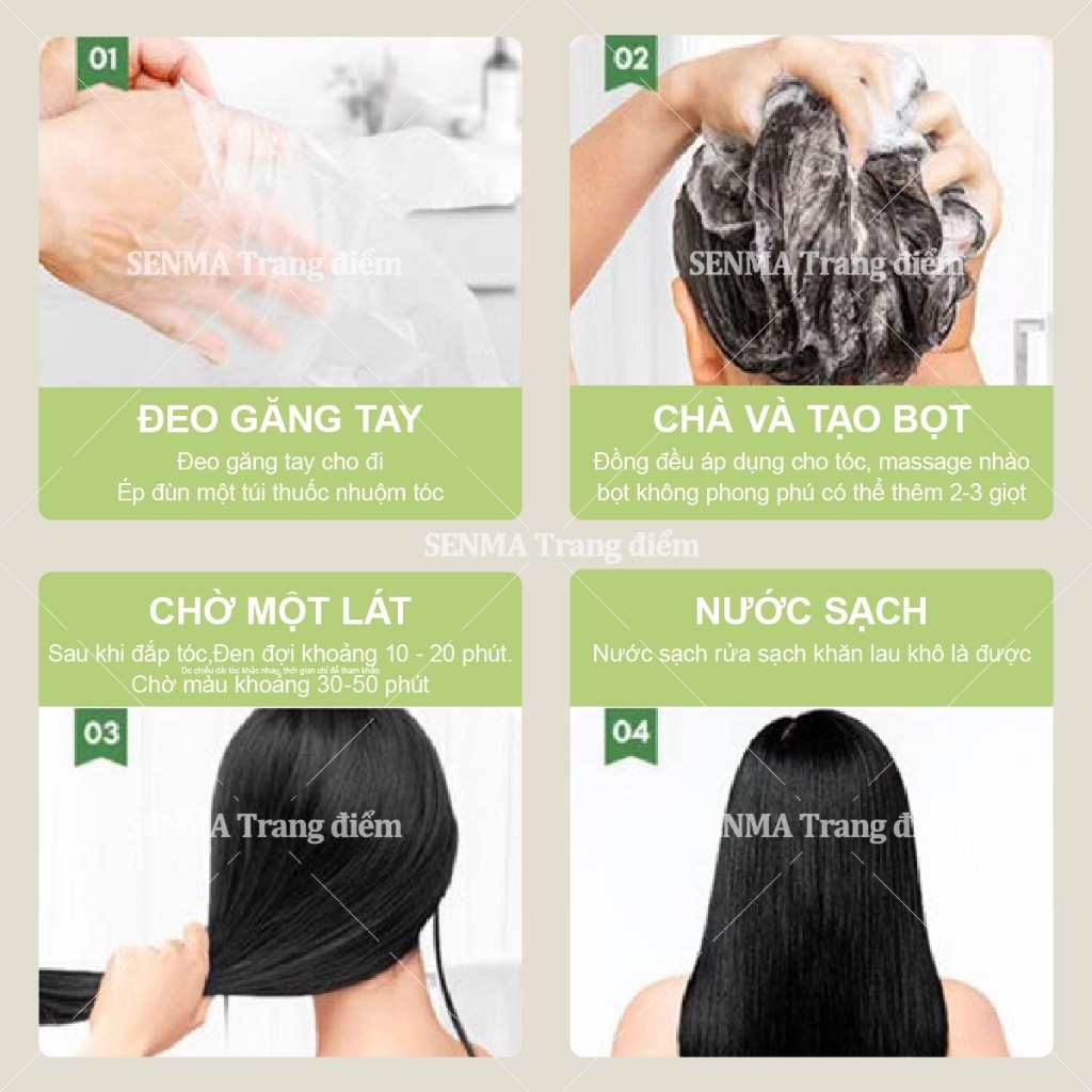 Dầu Gội Nhuộm Tóc Thảo Dược 10 Gói 300ml-Phủ Bạc Tự Nhiên,Lên Màu Chuẩn Đen/Nâu & Dưỡng Tóc Mềm Mượt