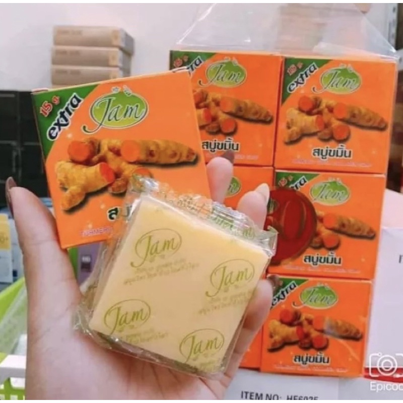 Bánh Xà Phòng, xà bông cục cam nghệ Thái Lan JAM TURMERIC GLUTA COLLAGEN SOAP 65G