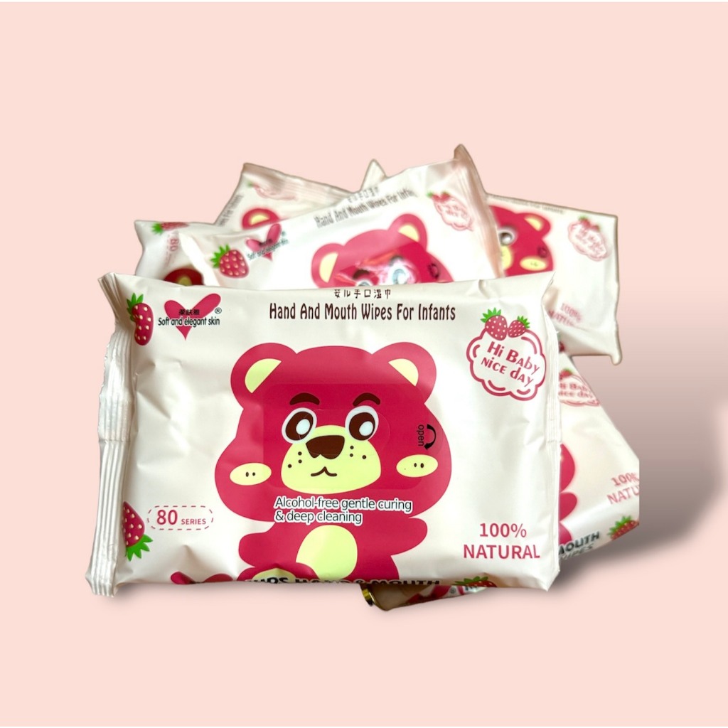 [Thùng 10 gói] khăn ướt Gấu Dâu nội địa Trung không cồn, không parabens dành cho em bé, 1 túi 80 tờ