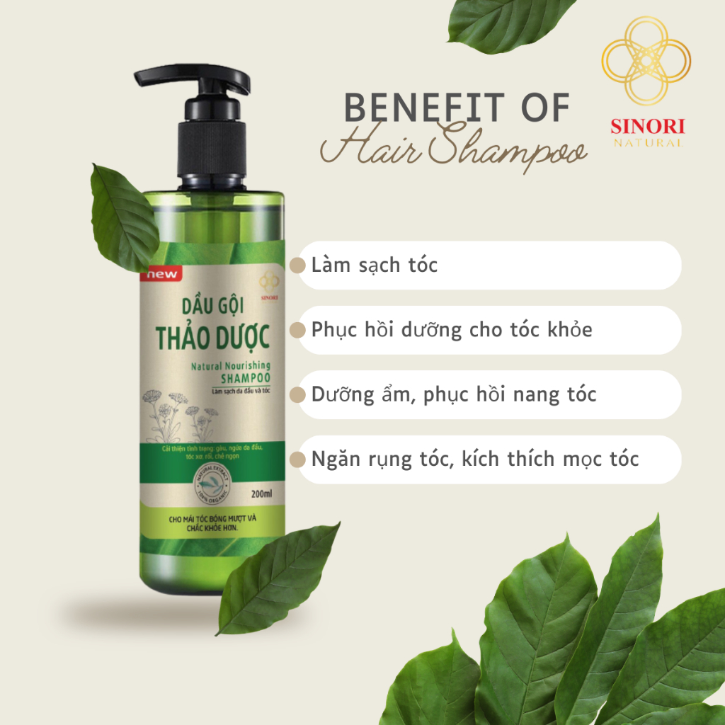 Dầu gội thảo dược Sinori, làm sạch da đầu, cải thiện dụng tóc 200ml