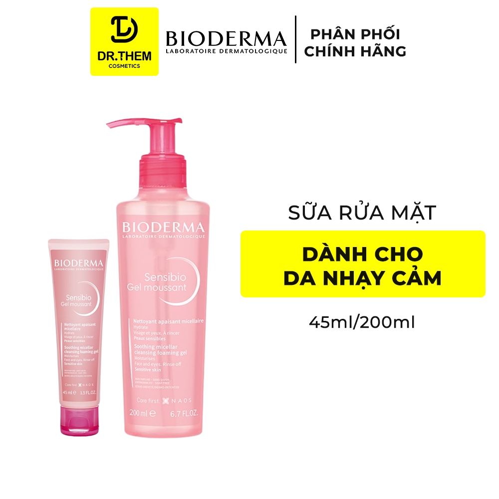 Sữa Rửa Mặt tạo Bọt Cho da Nhạy Cảm Bioderma Sensibio Gel Moussant Gel Hồng 45ml - 200ml- Dr Thêm
