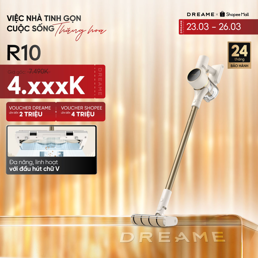 Dreame R10 Máy hút bụi cầm tay không dây | Công suất hút 120AW | linh hoạt với 4 đầu hút | BH 24 tháng