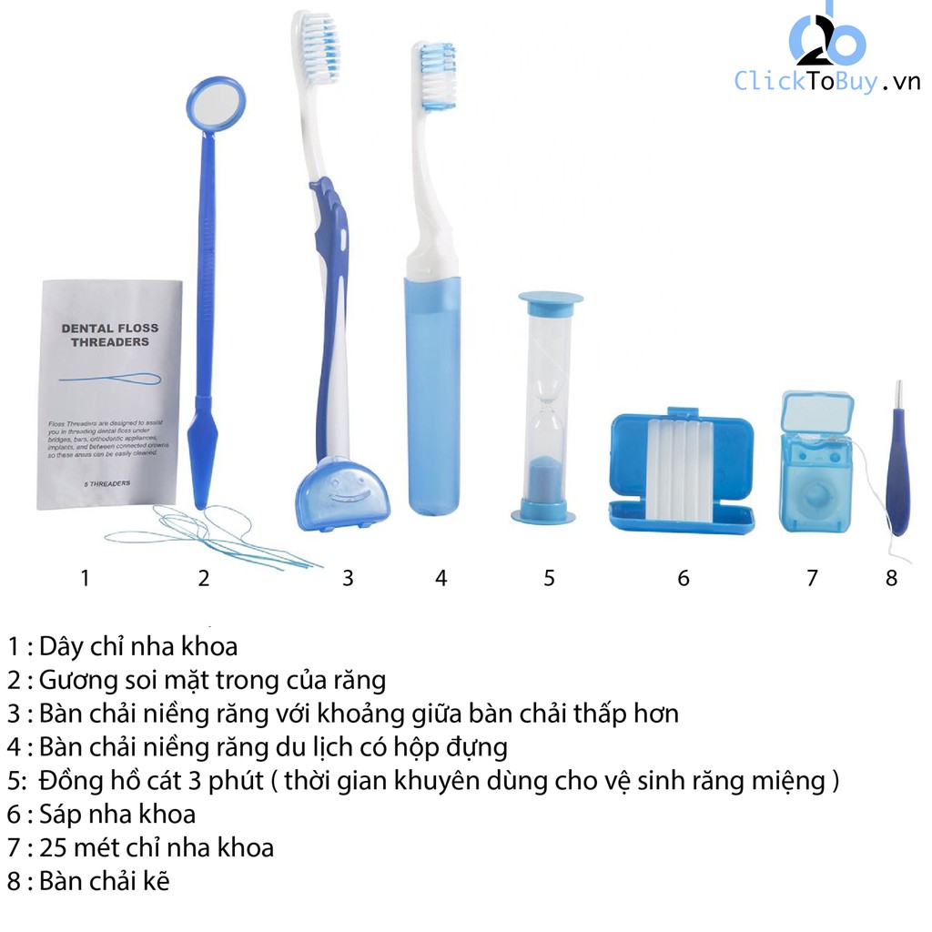 Bộ Dụng Cụ Vệ Sinh Răng Miệng Coral 8 món, Hỗ Trợ Niềng Răng