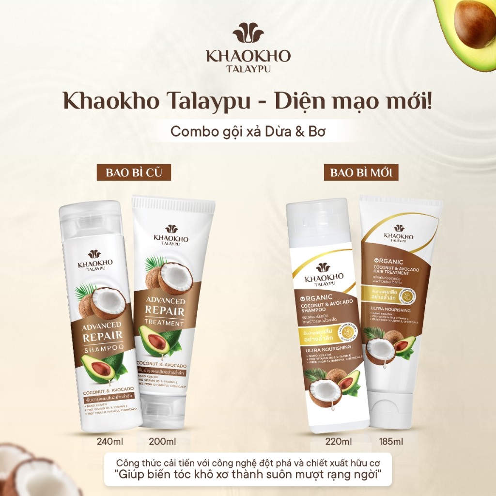 Kem Xả Dưỡng Tóc Organic Bơ Và Dừa KHAOKHO TALAYPU Công Thức Cải Tiến Mới Nuôi Dưỡng Và Bảo Vệ Tóc 185ml
