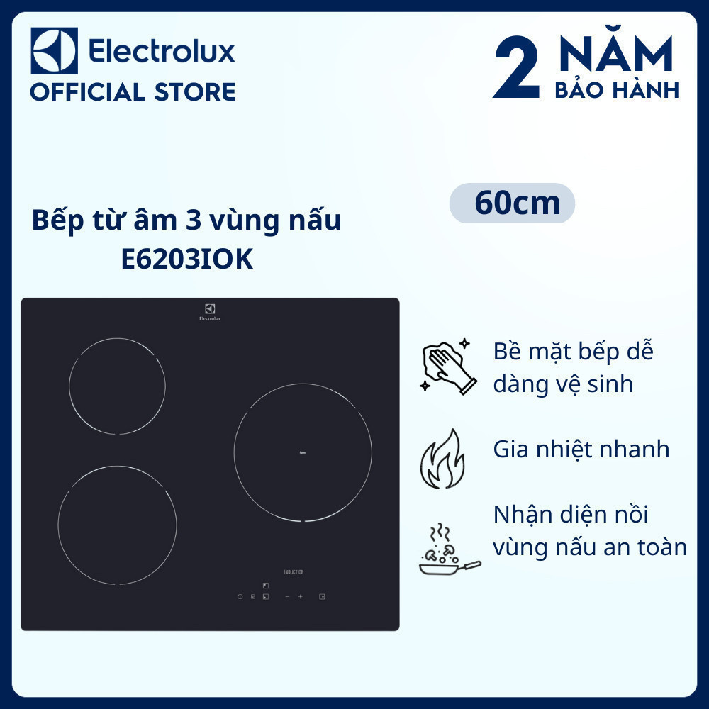 Bếp từ âm Electrolux 3 vùng nấu 60cm - E6203IOK - Gia nhiệt nhanh, dễ dàng vệ sinh