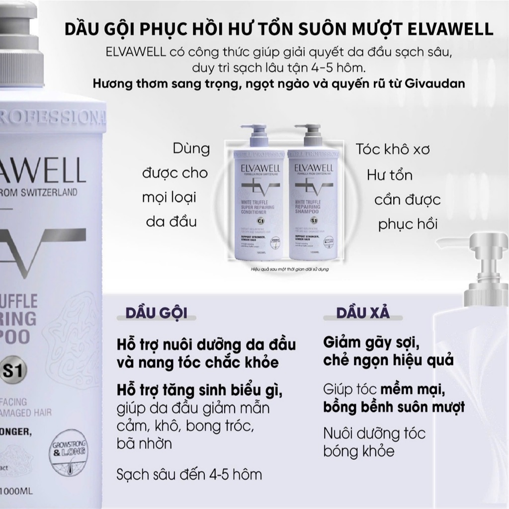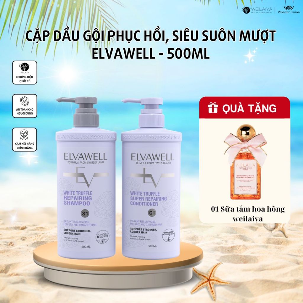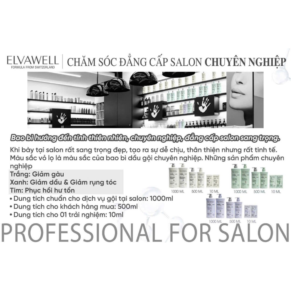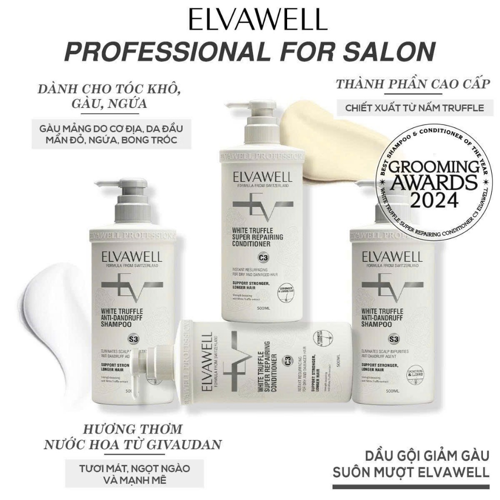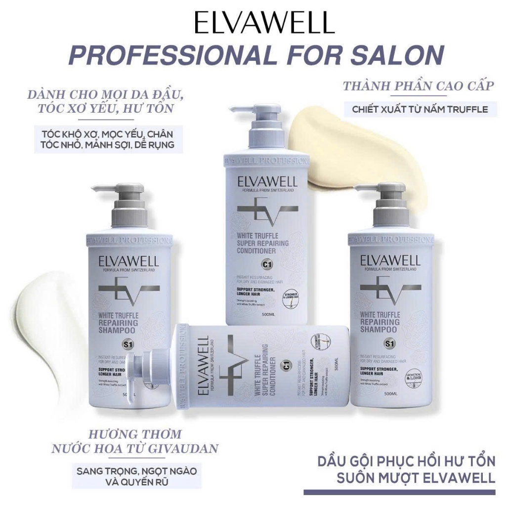 Combo dầu gội xả Elvawell phục hồi tóc hư tổn, giảm gàu, giảm rụng, sạch dầu bết