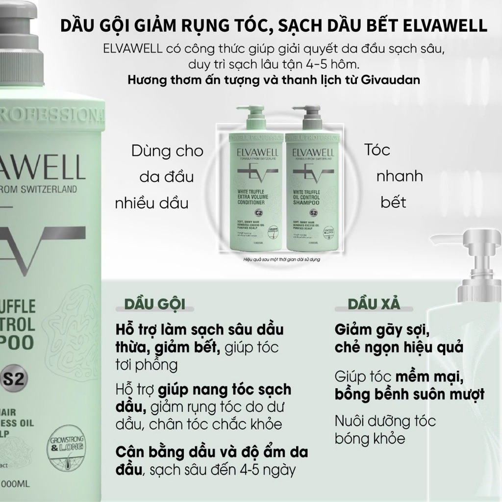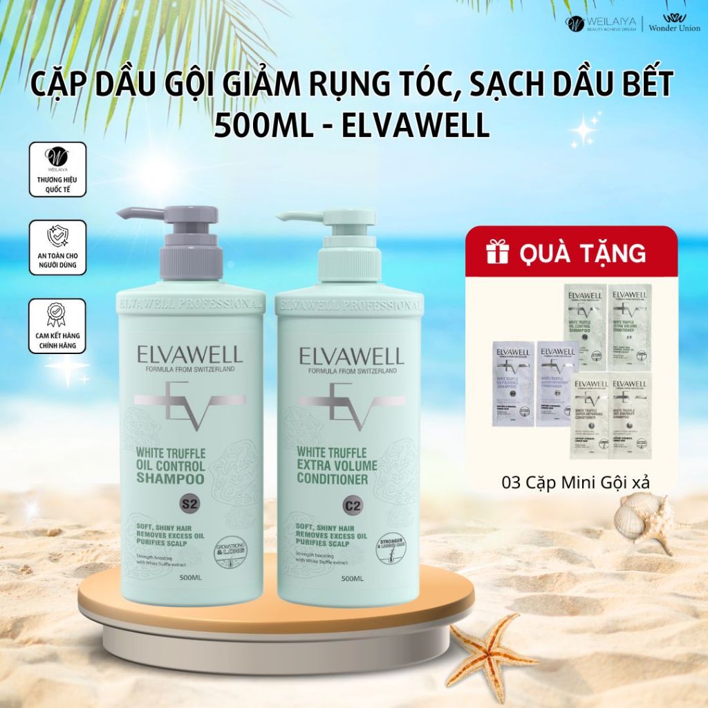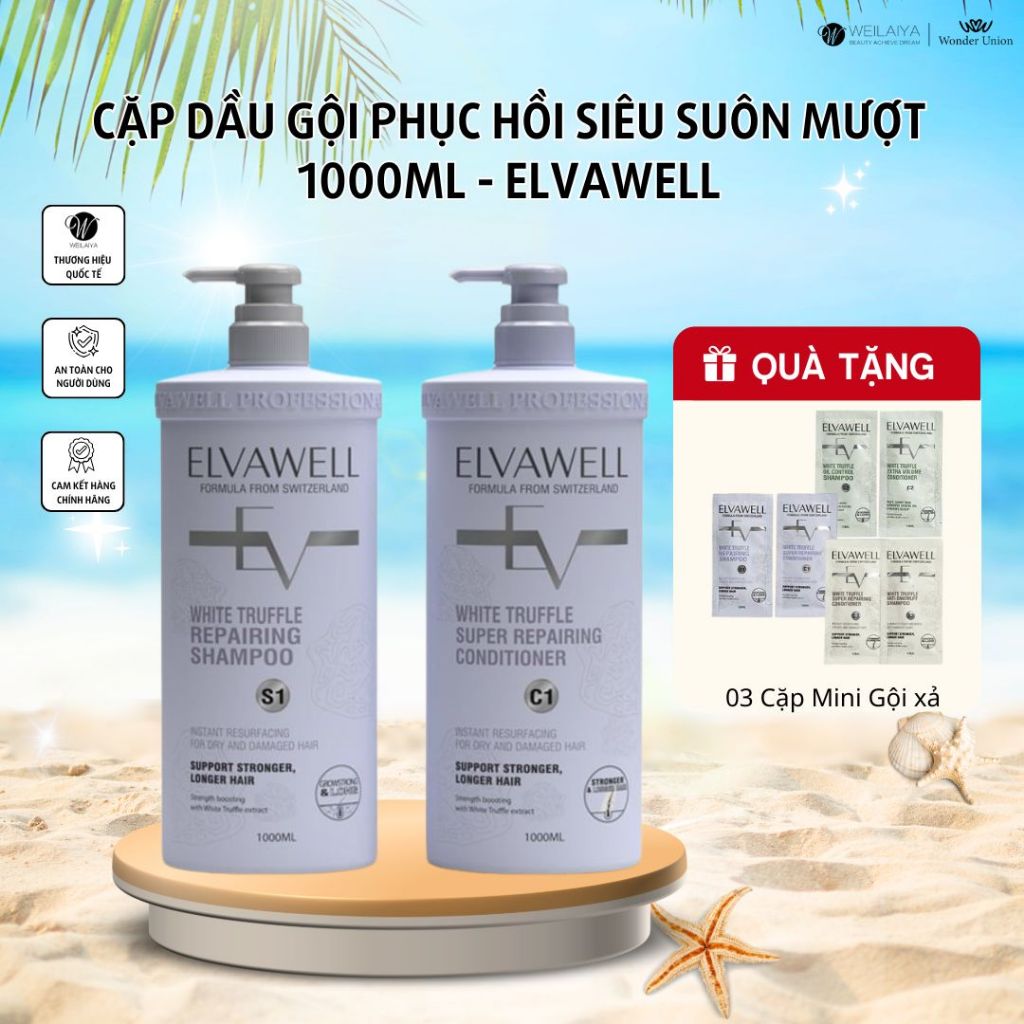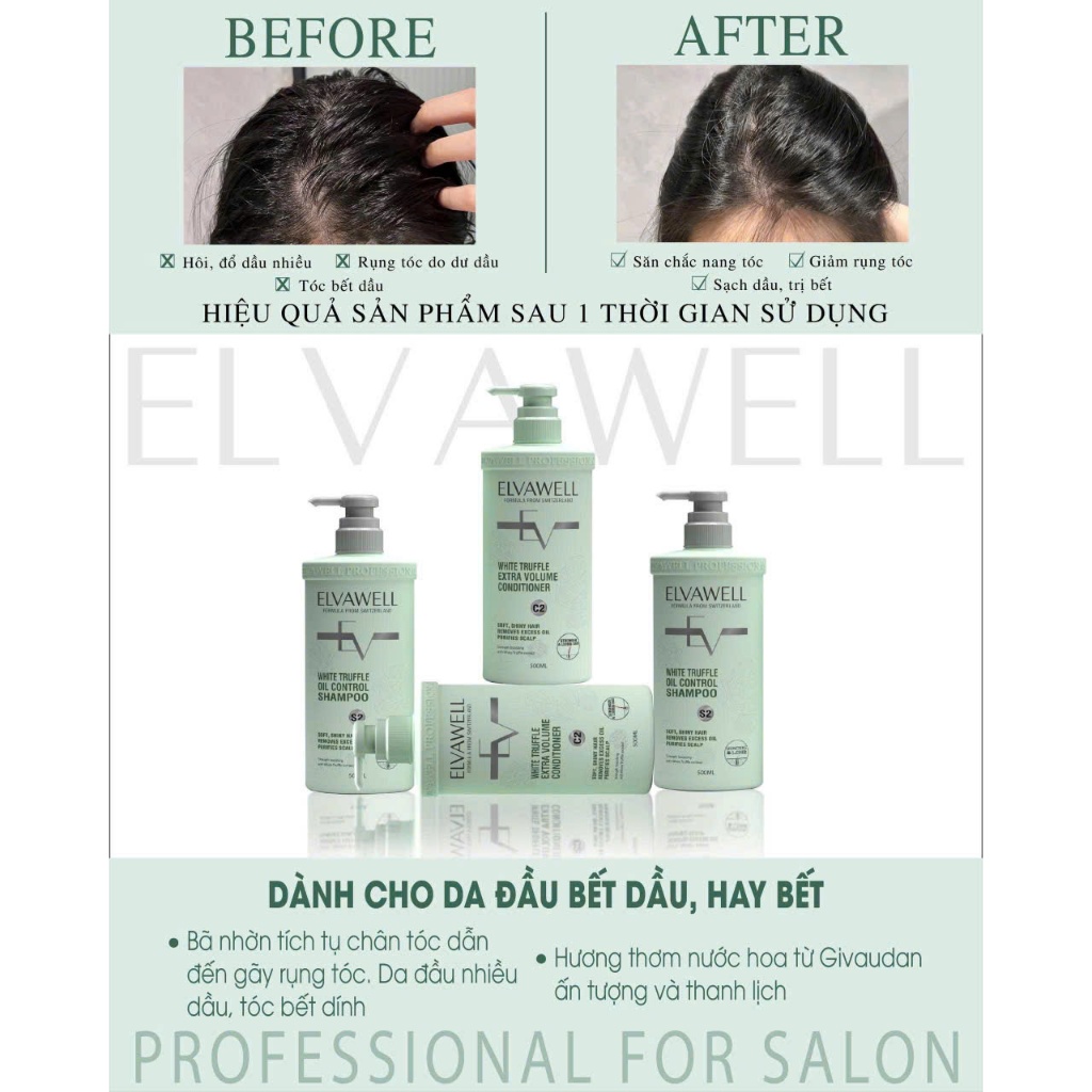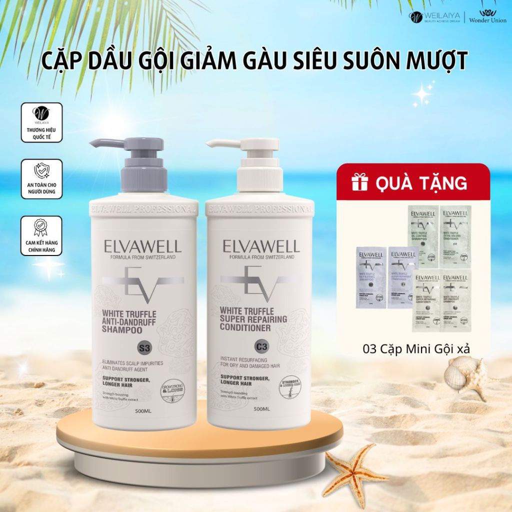 Combo dầu gội xả Elvawell phục hồi tóc hư tổn, giảm gàu, giảm rụng, sạch dầu bết