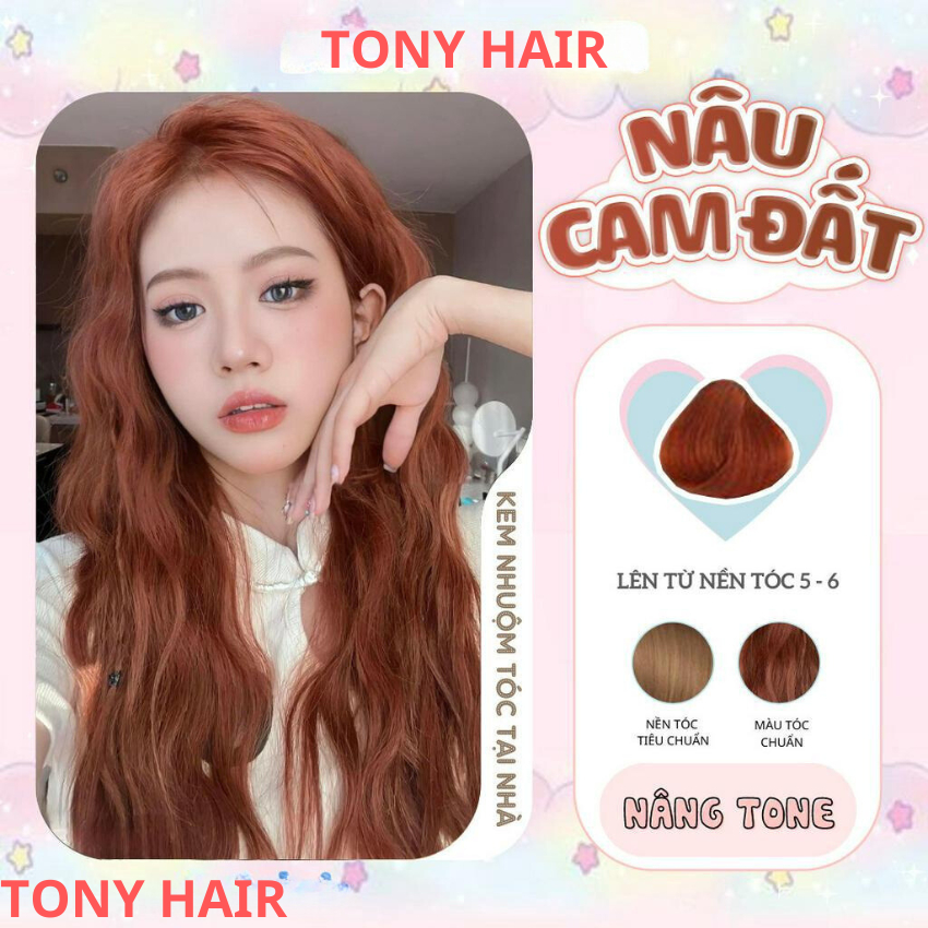 Thuốc nhuộm tóc nâu, thuốc nhuộm tóc Nâu Cam Đất, tặng kèm oxy trợ dưỡng và bao tay _ Tony Hair