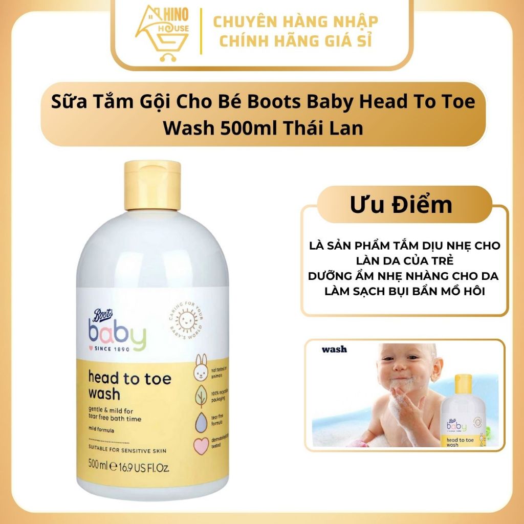 Sữa Tắm Gội - Gội Xả Cho Bé Boots Baby Head To Toe Wash 500ml Thái Lan Hương Thơm Dịu Nhẹ - Hinohouse