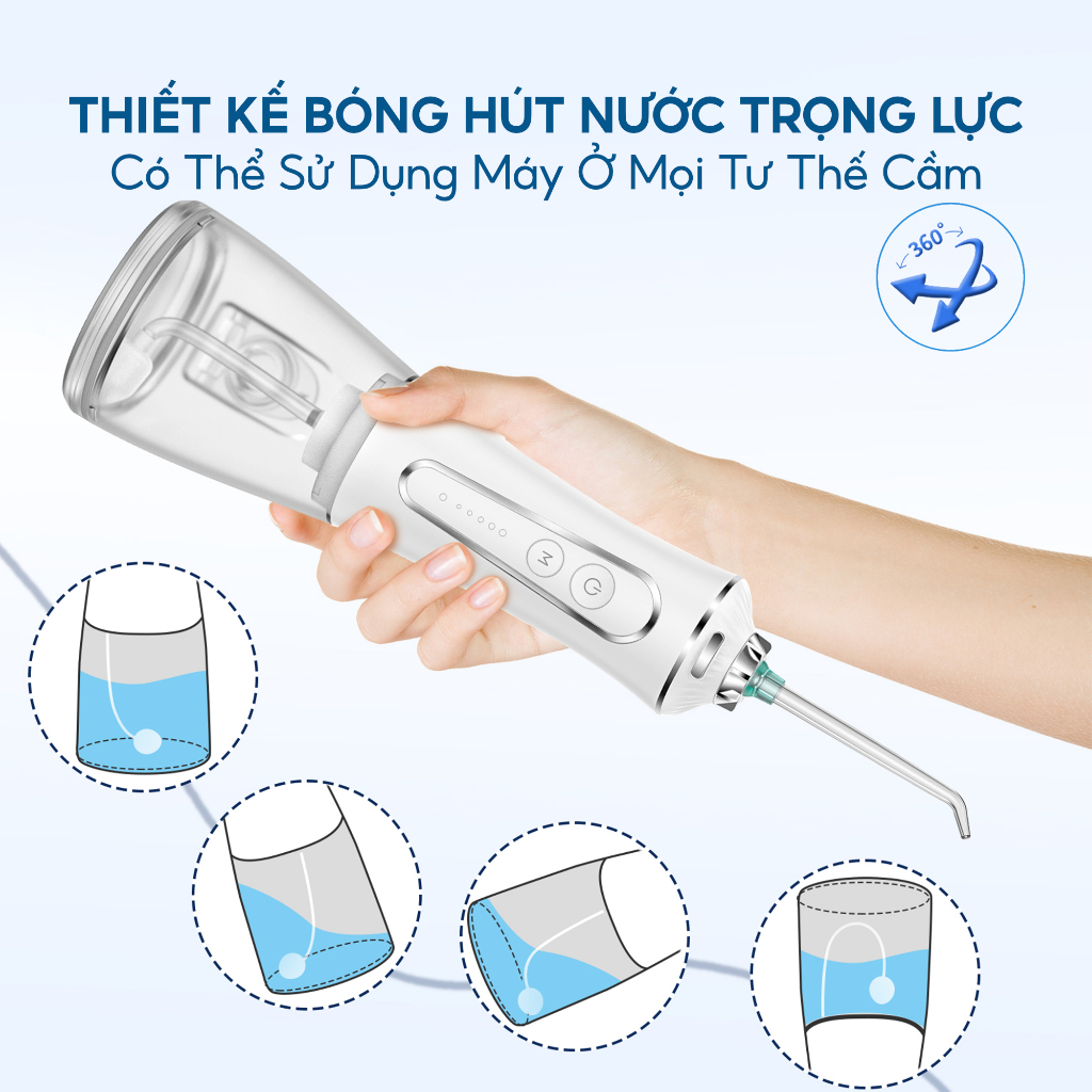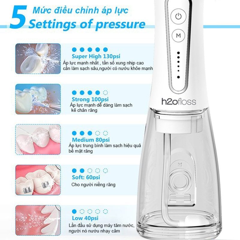 Máy tăm nước h2ofloss HF-P11 MÀU TRẮNG 2025 - Kèm đầu tăm 2 chiều làm sạch sâu