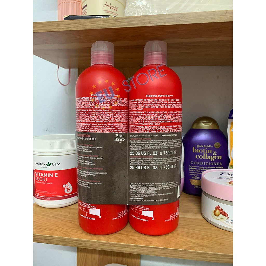 [Bản Mỹ] Cặp dầu gội xả Tigi đỏ Bed Head 750ml phục hồi tóc hư tổn, khô xơ cấp độ 3