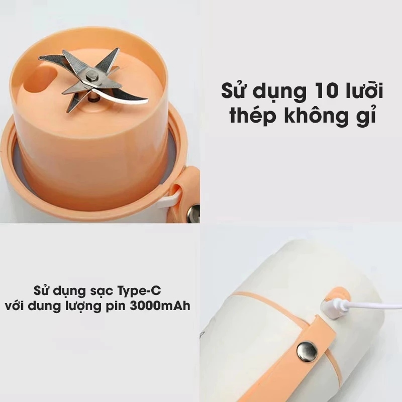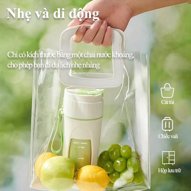 Máy Xay Sinh Tố Cầm Tay Mini JUICER Dung Tích 340ml - Cốc Xay Sinh Tố Du Lịch Nhỏ Gọn Sử Dụng Pin 3000mAh BH 6 Tháng