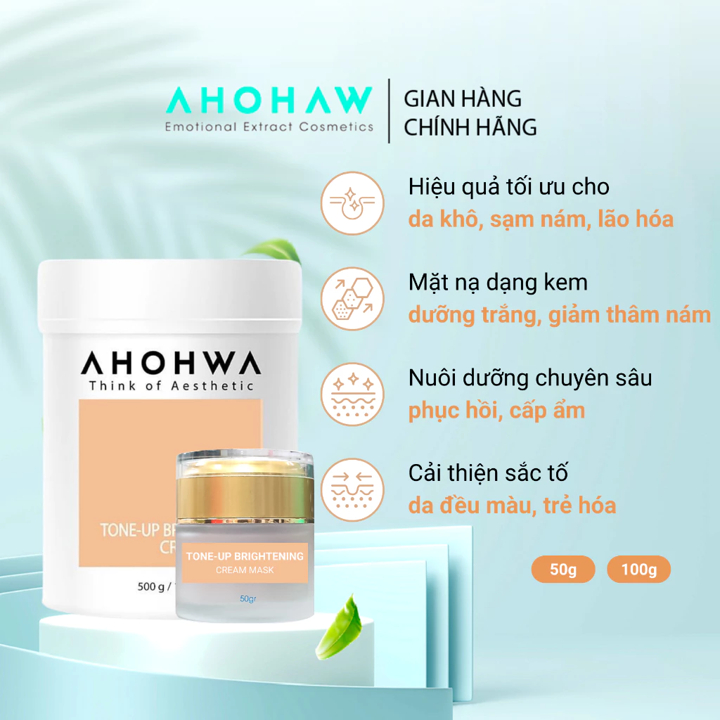 Mặt Nạ Kem Cao Cấp Ủ Trắng Sáng Tự Nhiên, Giảm Thâm Nám AHOHWA Tone Up Brightening Cream Mask 500g