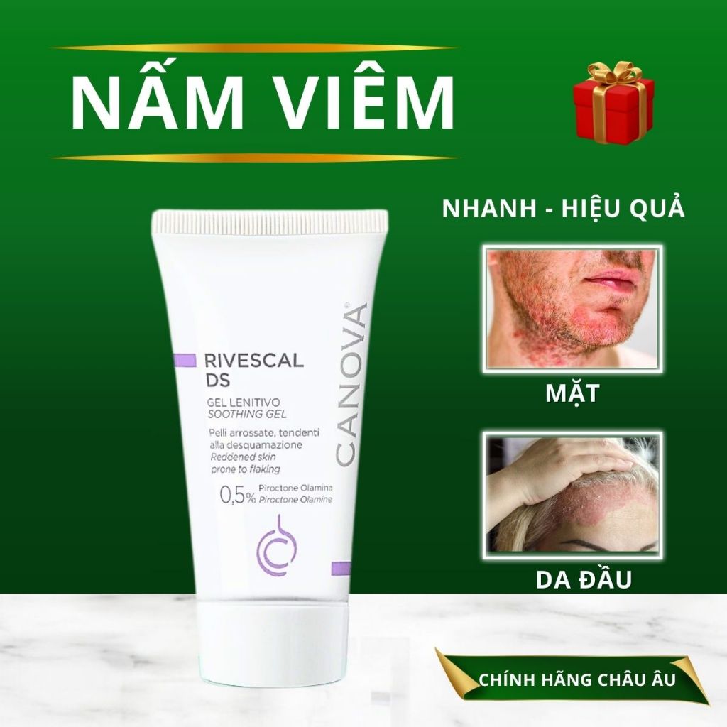 Kem Bôi Viêm Da Tiết Bã Nấm Đầu CANOVA RIVESCAL DS Gel 50ml và Dầu Gội Sạch Gàu Nấm Dịu Da Đầu