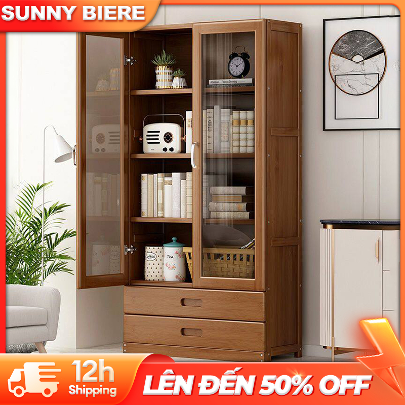 Kệ Sách Tre Thân Thiên 2 Cửa Kính Long Lanh 2 Ngăn Kéo Đa Năng Thông Minh