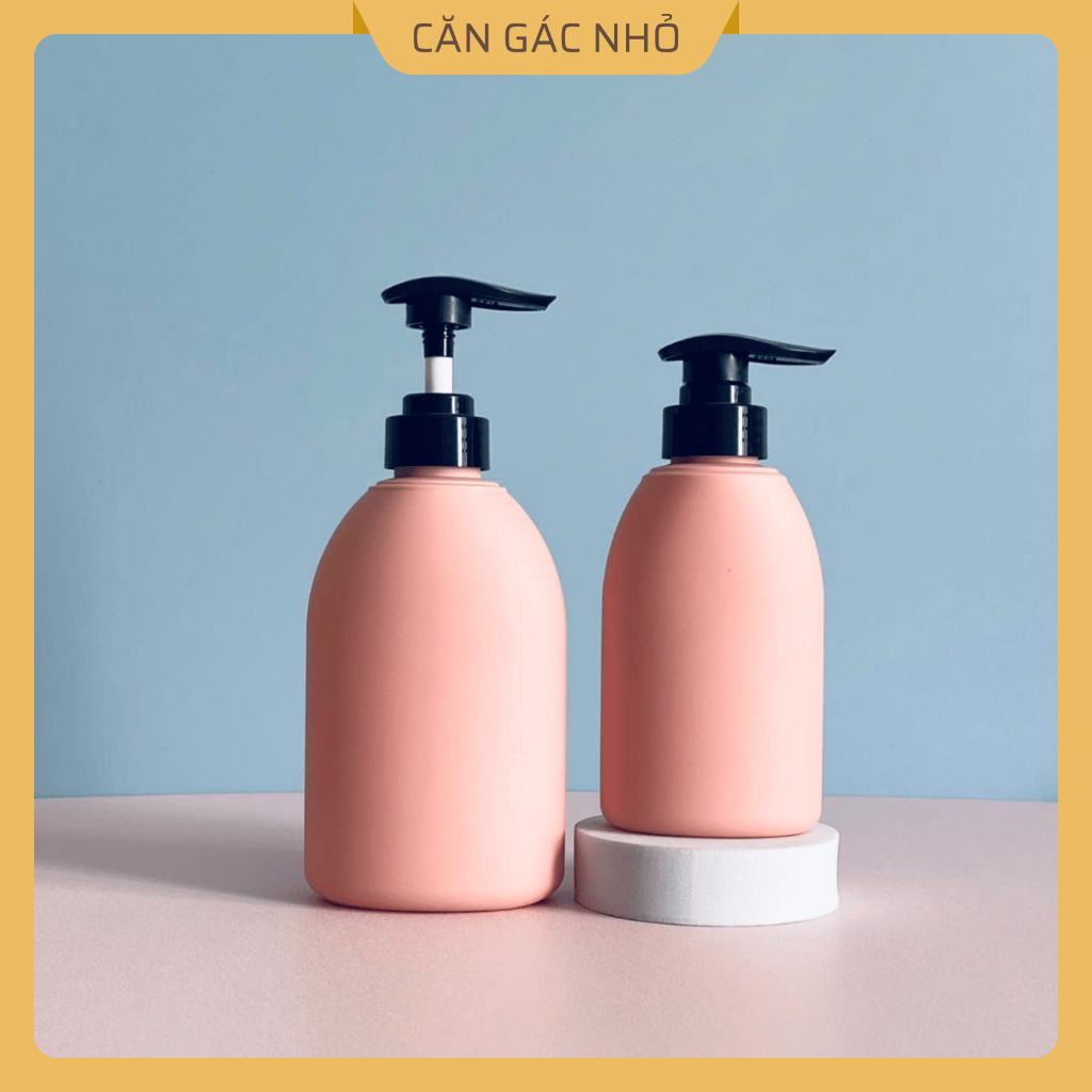 Chai Chiết Dầu Gội, Mỹ Phẩm Nhựa HPDE Màu Hồng Pastel Dáng Bầu Dung Tích 350ml, 500ml - Căn Gác Nhỏ
