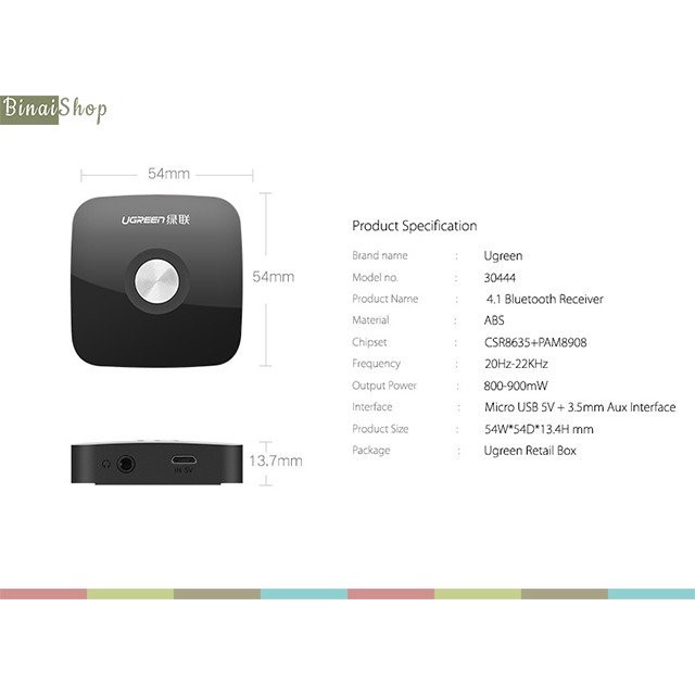 Ugreen 4.1 - 30444 - Bộ Thu Bluetooth Receiver Adapter