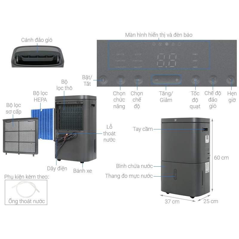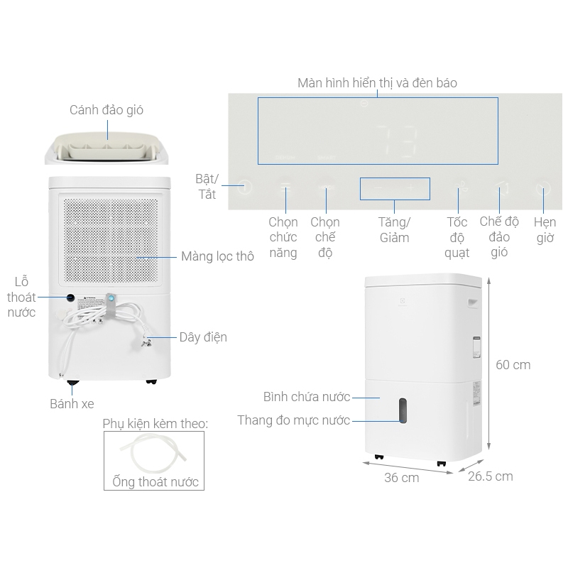 [FREESHIP + LẮP ĐẶT HN]Máy hút ẩm Electrolux 20 lít EDH10TRBW1 - Bảo hành 24 tháng