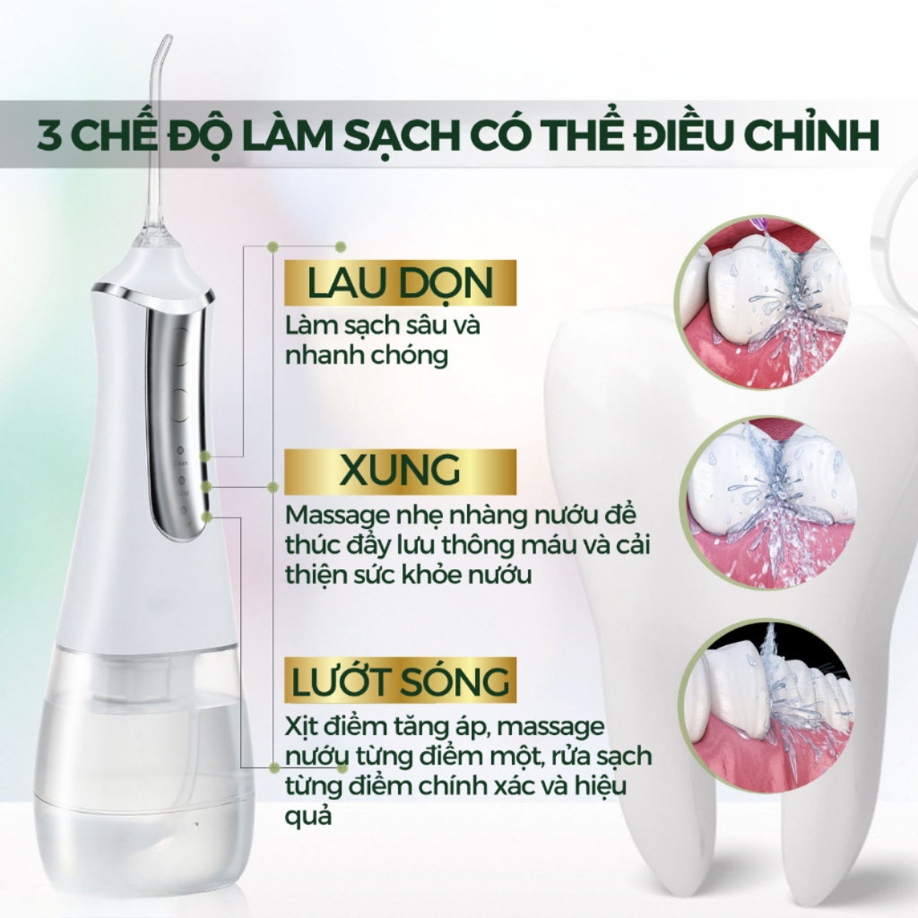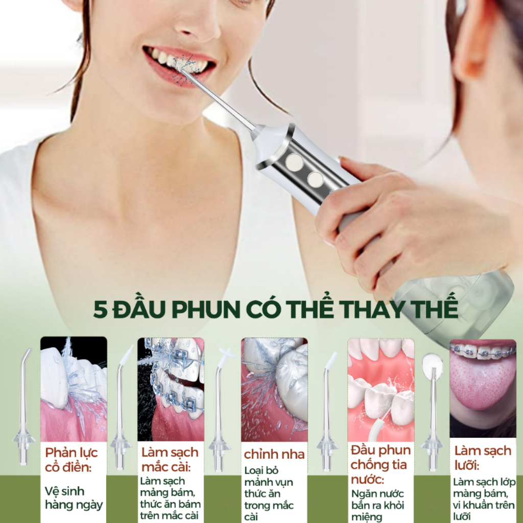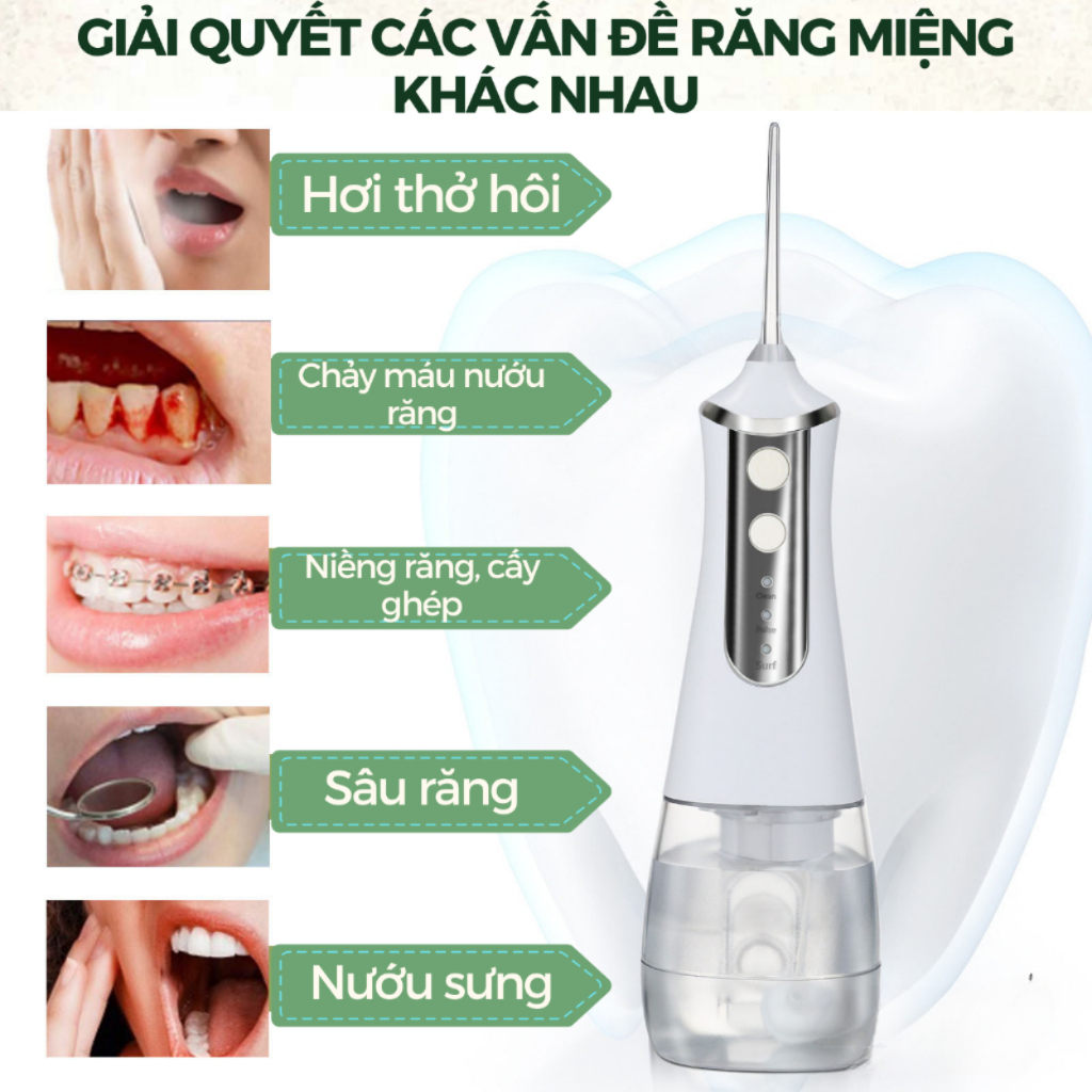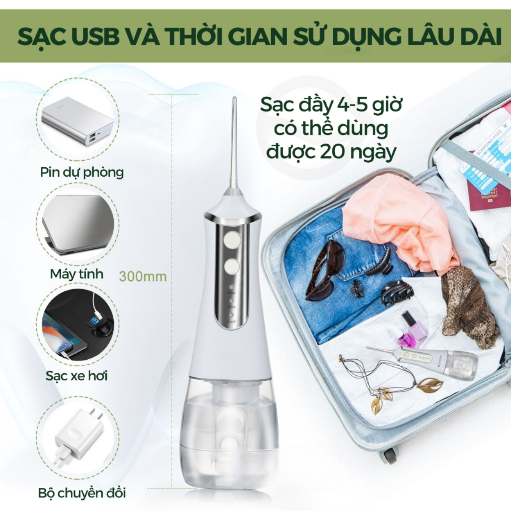 Máy Tăm Nước Cầm Tay KAW 300ml, 3 Chế Độ - 5 Đầu Tăm, Chống Nước Cao Cấp Phù Hợp Mọi Gia Đình, Dụng Cụ Vệ Sinh Răng Mệng