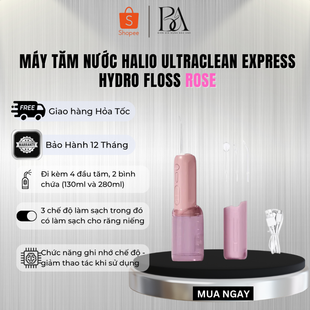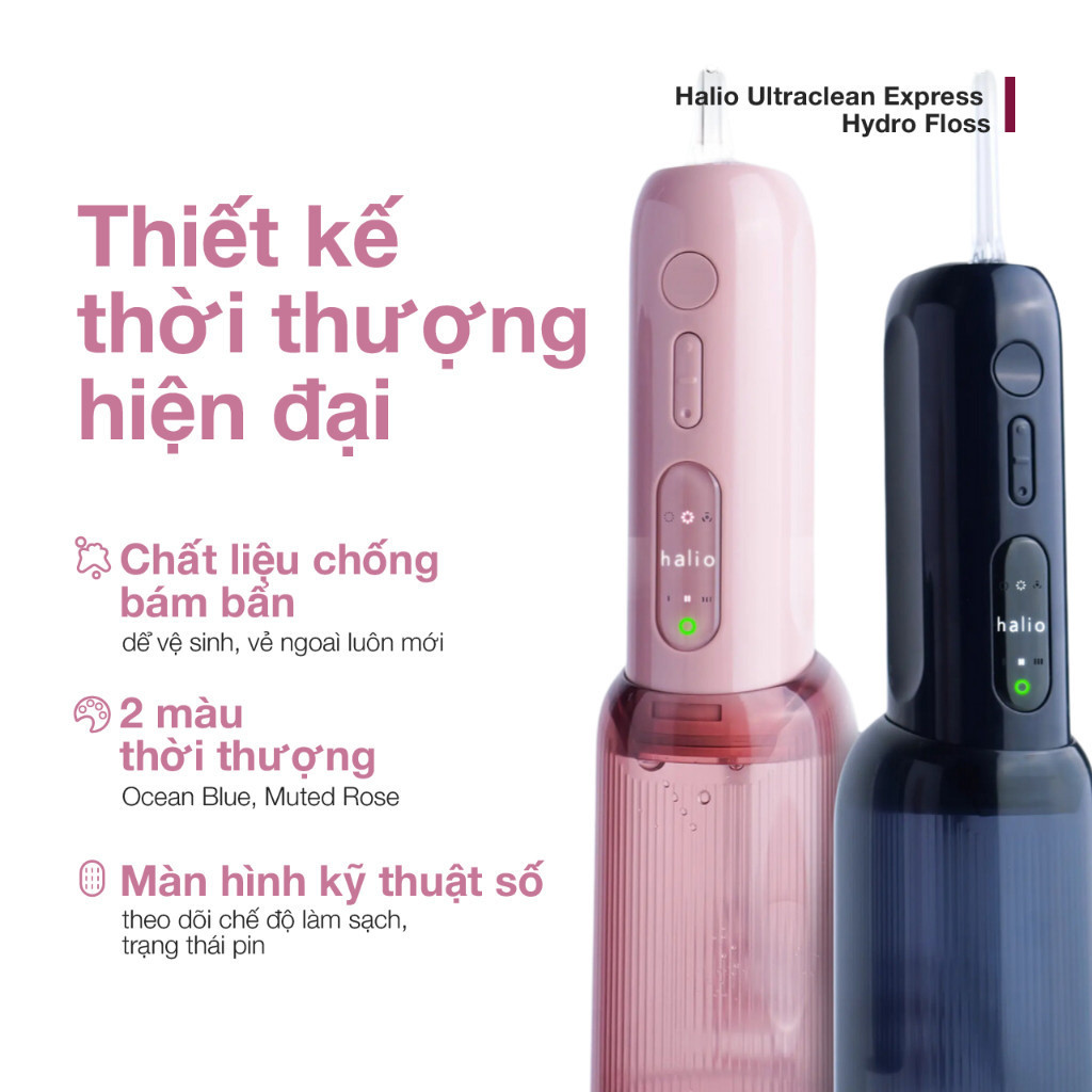 Máy Tăm Nước Cầm Tay Halio Ultraclean Express Hydro Floss| 9 Chế Độ, 4 Đầu Phun, 2 Bình Chứa Nước, Làm Sạch Vết Thức Ăn