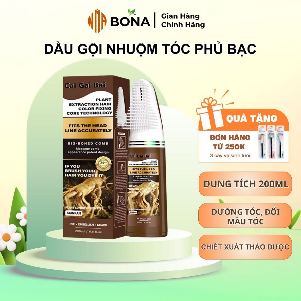 Dầu Gội Nhuộm Tóc Kèm Lược CAIGAIBAI Che Tóc Bạc Tại Nhà, Nhuộm Tóc Thảo Dược 200ml, Mượt Mà, An Toàn Cho Da Đầu