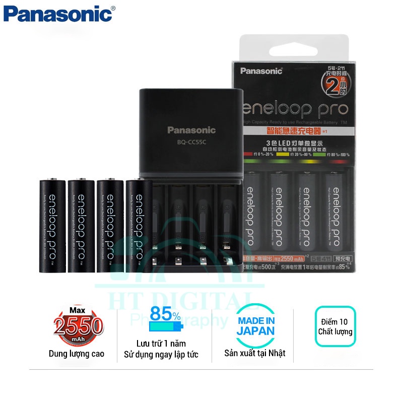 Pin Sạc Panasonic Eneloop Pro 2550mAh - Bộ Sạc Pin AA/AAA Panasonic KJ55HCC40C Sạc nhanh, tự ngắt, sản xuất tại Nhật
