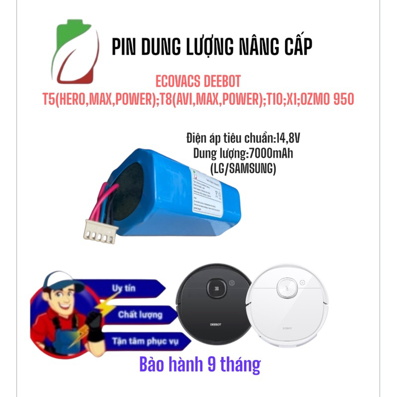 PIN ECOVACS DEBOOT: T5(HERO,MAX.POWER),T8/T9(AVI,POWER),X1 OMNI,T10 TURBO,T10 OMNI,OZMO950,DUNG LƯỢNG 7000MAHBH 9 THÁNG