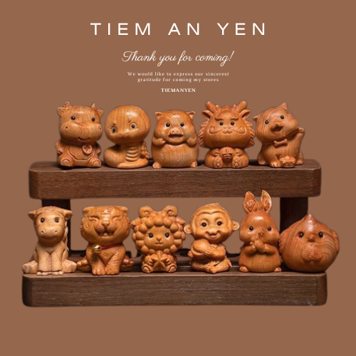 [LẺ] Mô hình Tượng Linh Vật 12 Con Giáp Gỗ Đàn Hương Chạm Khắc Hoạt Hình Dễ Thương Dùng Trang Trí, Quà Tặng