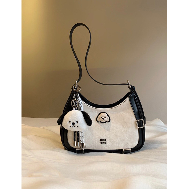 Túi xách chio'2nd,túi xách nữ đeo vai đeo chéo sang chảnh xu hướng 2025 kèm charm mặt cún -D60