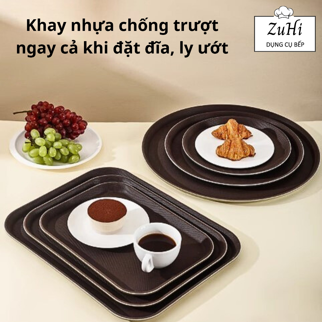 Khay Nhựa Chống Trượt Cao Cấp Loại Dày Mặt Nhám Tròn/Chữ Nhật Bưng Cafe Quán Bar Nhà Hàng, Gia Đình