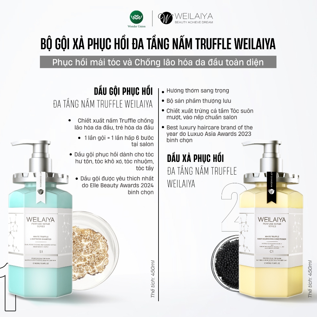 Bộ dầu gội xả phục hồi đa tầng nấm Truffle Weilaiya, suôn mượt, giảm gàu, phục hồi tóc hư tổn